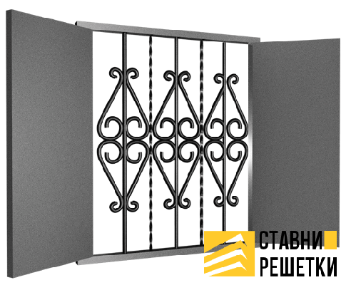 Ставни с 2мя створками и кованой решеткой ГС-16